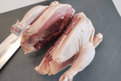 Cut the chicken in half.