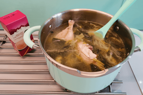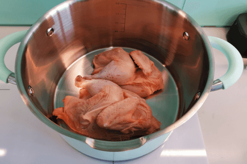 Put the chicken in the pot.