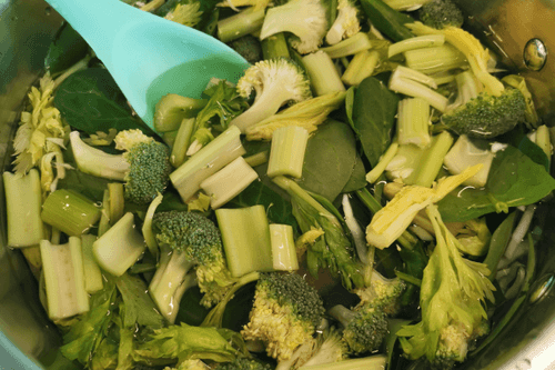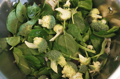 Add spinach and broccoli to the pot.