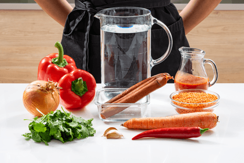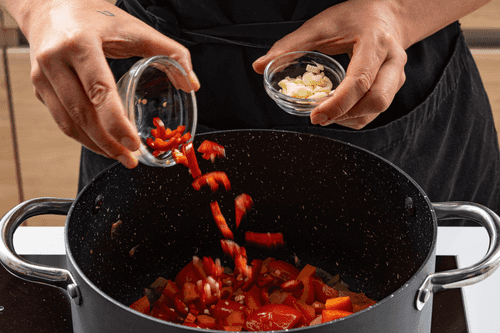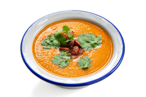 Israeli pepper and lentil soup is a vibrant and aromatic dish of Jewish cuisine that combines the rich flavor of sweet peppers, the spiciness of garlic and chili, and the tender texture of red lentils. The roots of this recipe trace back to Mediterranean culinary traditions where vegetables and legumes form the basis of many dishes. The thick puree soup warms you up, filling the home with warmth and coziness, while its rich flavor pairs excellently with sausages and fresh cilantro. This soup can be served as a standalone dish or as a nutritious lunch on cool days. The dish is perfect for lovers of spicy and rich flavors, immersing you in the atmosphere of Israeli streets where the aroma of spices fills the air.