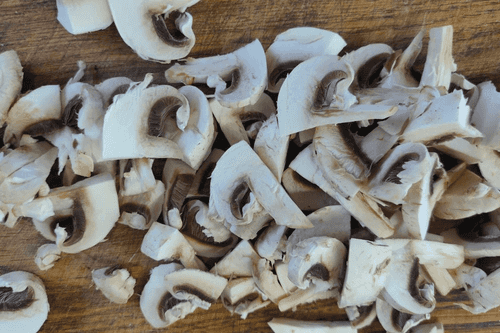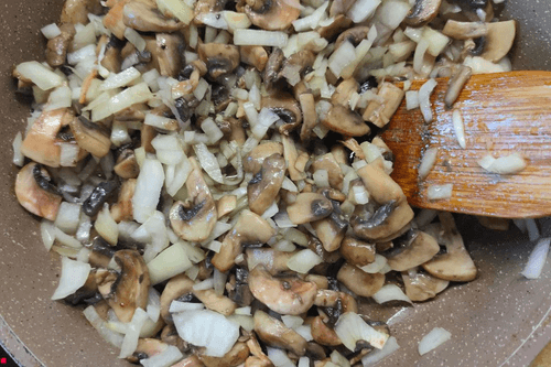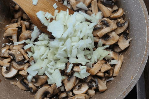 Add chopped onion to the mushrooms.