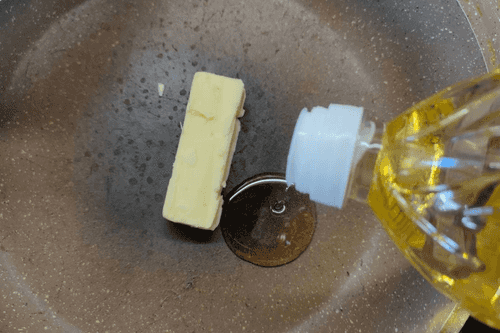 Melt butter and vegetable oil in a pan.