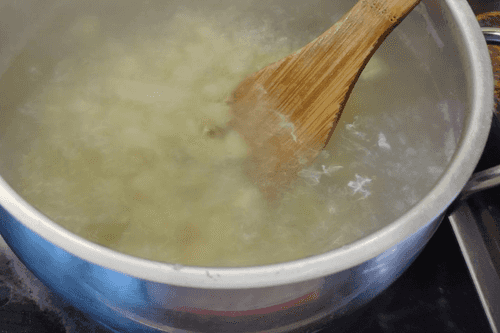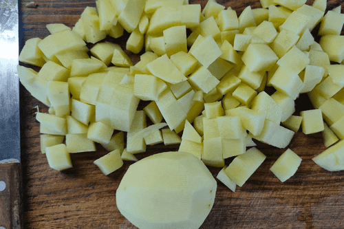 Cut the potatoes into cubes.