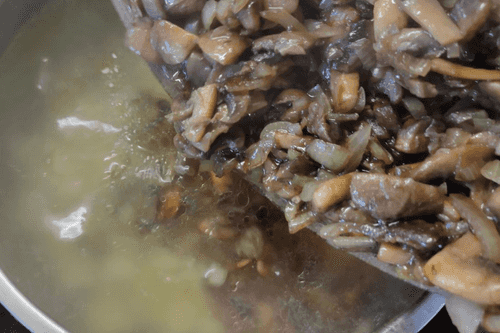 Send the prepared mushrooms with onions to the pot with potatoes.