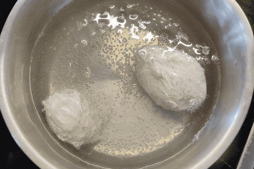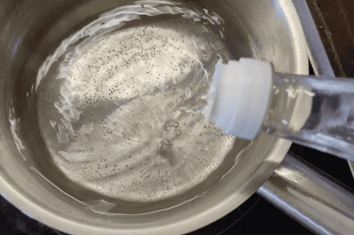Pour water into a pot, bring it to almost boiling, add vinegar.