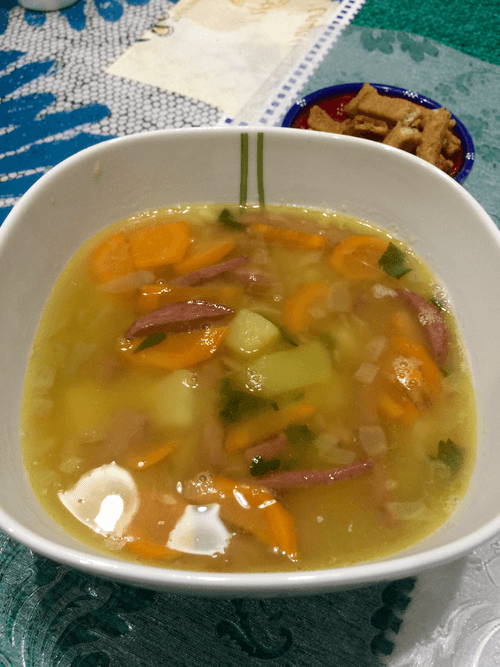 Rassolnik with buckwheat is a traditional Russian soup filled with rich flavor and an amazing harmony of ingredients. Its base is an aromatic vegetable broth complemented by tender pieces of potatoes, sweet carrots, and tangy pickles. Buckwheat gives the dish a unique texture and makes it even heartier. Sour cream added at serving softens the taste and adds a creamy note, while fresh herbs complete the ensemble of aromas. Rassolnik has been known since ancient times when it was prepared in Russian homes after festive feasts using leftover pickles. This soup warms wonderfully in cold weather and is an excellent option for a family lunch.