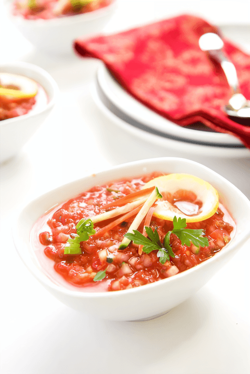 Barley gazpacho is a bold interpretation of the classic Spanish cold soup born under the hot sun of Andalusia. This refreshing soup combines rich tomato flavor with the crunchy texture of fresh vegetables and a spicy hint of chili pepper. The addition of barley gives the dish an unusual density and makes it more filling, making this gazpacho perfect for a summer lunch or light dinner. Herbs, cilantro, and green onions enrich the taste with freshness, while avocado slices add creaminess. Chilled before serving, this soup refreshes and invigorates, revealing new facets of traditional Spanish cuisine. Barley gazpacho is a gastronomic adventure that combines southern warmth and rich textures in one bowl.