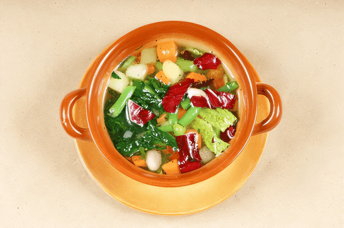 Pork knuckle soup with cabbage and white beans