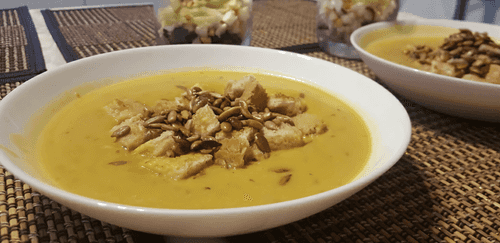 Serve with roasted pumpkin seeds.