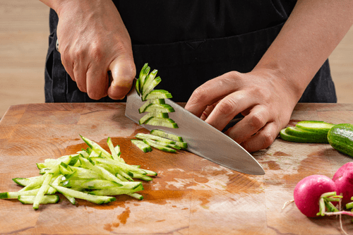 Cut the radishes and cucumbers into strips.