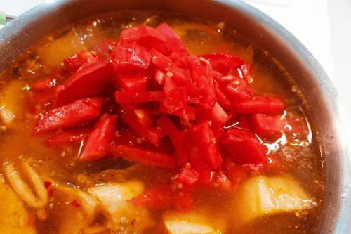 Add chopped tomatoes 5 minutes before it's ready.