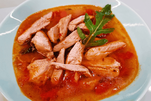 Суп кимчи из бедра индейки — это сочетание глубокой корейской традиции и нежного вкуса индейки. Кимчи, символ корейской кухни, придаёт блюду пикантную остроту и насыщенность, а индейка делает его более мягким и питательным. Исторически кимчи использовался как основа для многих горячих блюд благодаря своему богатому вкусовому профилю. Суп получается согревающим, с легкой кислинкой и пряностью, которые балансируются сочностью помидоров и ароматными специями. Идеально подходит для холодного времени года, насыщая организм полезными веществами и пробуждая аппетит. Подается горячим, лучше всего в глубокой тарелке, чтобы сохранить его насыщенный вкус. Это не просто еда, а настоящий кулинарный опыт, раскрывающий многогранность корейской гастрономии.