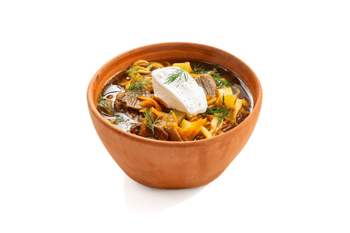 Mushroom noodles are a comforting dish of Russian cuisine, warming with the aroma of forest mushrooms and homemade noodles. Its history is rooted in village traditions when housewives prepared simple yet rich soups from what nature provided. The mushroom broth, infused with the flavor of dried porcini and fragrant herbs, fills each spoonful with a thick, velvety aroma. Hand-made delicate noodles give the dish a unique texture and make it truly cozy. Carrots and potatoes add gentle sweetness and softness, while sour cream that can be added before serving completes the picture with creamy richness. This soup is not only nourishing but also evokes memories of warm family evenings when food is not just taste but a story that unites generations.