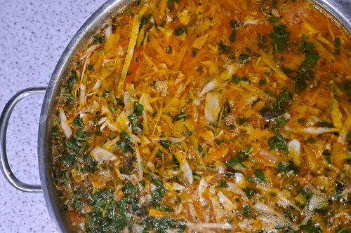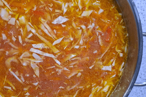 Wash the cabbage well under running water, chop it into small strips, and place it in a pot.