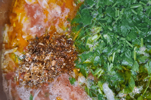 Wash the parsley well, remove all excess, chop finely, and place it in a pot. Also add 1 teaspoon of pepper mix.
