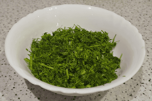 Wash the dill well under running water, chop finely, and place it in a separate container.