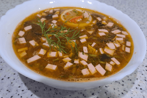 Солянка с говядиной и колбасой — это густой, ароматный суп, наполненный насыщенными вкусами мяса, овощей и специй. Это блюдо берет свое начало в русской кухне, где оно было популярно среди путешественников и трактирщиков. Солянка отличается пикантностью благодаря маринованным огурцам и оливкам, а лимонные дольки придают ей приятную кислинку. В сочетании с томатным соком, нежной говядиной и копченой колбасой она приобретает гармоничный, насыщенный вкус. Этот суп идеально подходит для согрева холодными вечерами и является отличным вариантом для сытного обеда. Подается горячим, обычно со сметаной и свежей зеленью, что делает его еще более аппетитным и насыщенным. Солянка — это не просто суп, а настоящий кулинарный шедевр с историей!