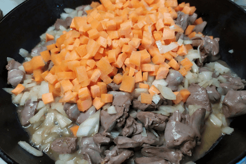 Place chicken hearts with vegetables in the pot with broth.