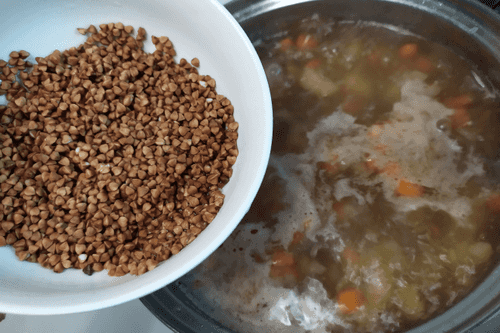Salt to taste and cook until the buckwheat is ready (but do not let it overcook).