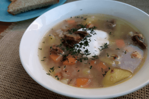 Serve with sour cream and finely chopped greens.