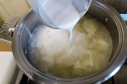 Add hot cream.
