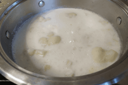 Place the cauliflower on top and pour water so that the vegetables are completely covered.
