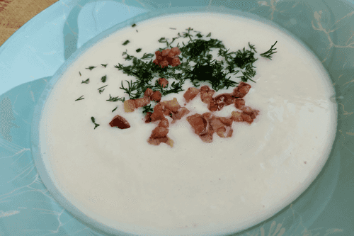 Cream soup of cauliflower with bacon