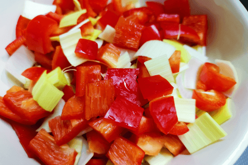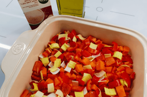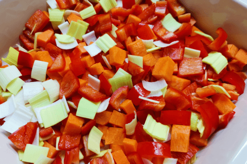 Do the same with the pepper and combine the ingredients in a baking dish.