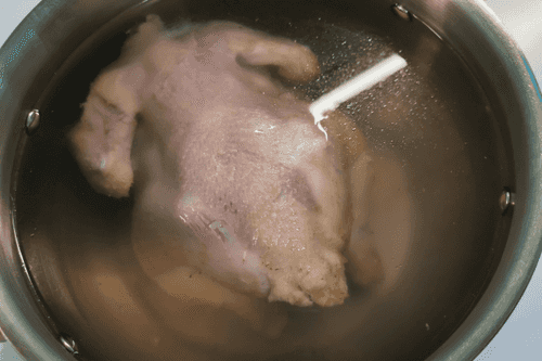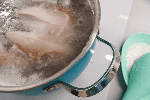 Place the chicken in a pot and cover it with drinking water. Set it on high heat.