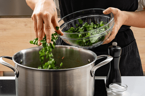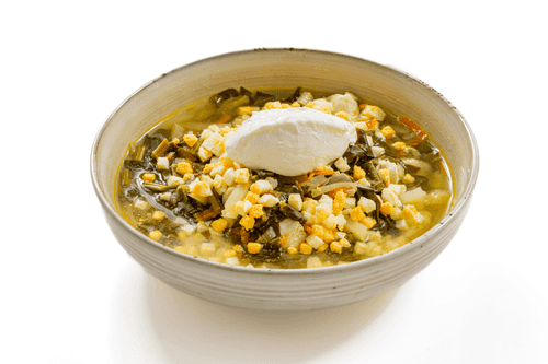 Chop the sorrel and add it to the soup, bring to a boil and remove from heat.