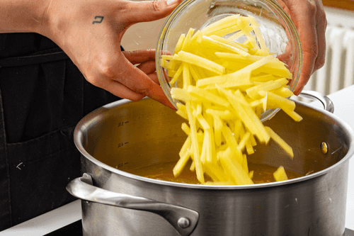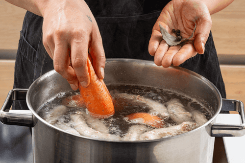 Add the halved onion and carrot. Cook on low heat for about 1.5 hours.