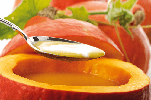 Grease the pumpkin with vegetable oil on the outside, cover with a lid, and place in a preheated oven (175 degrees) for 1 hour.