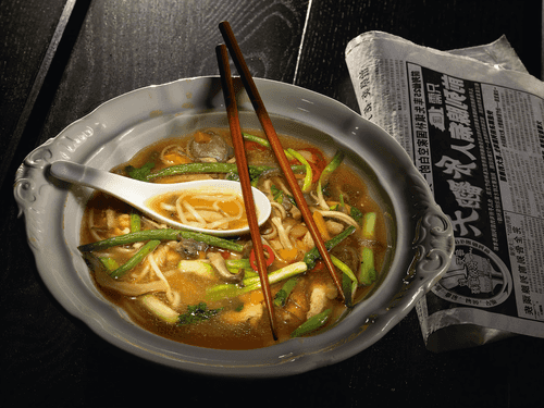 The chicken that is put into the soup is fried raw in a frying pan. And the chicken broth will need to be cooked in advance, and it is better to cook it from chicken bones. In addition, hard-boiled eggs can be added to the soup.