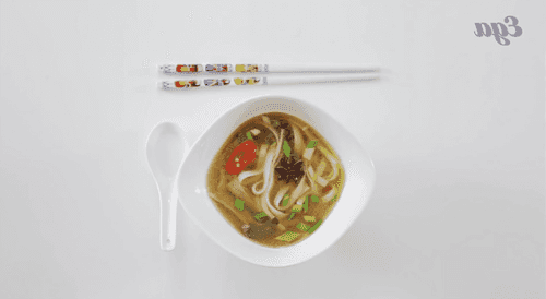Remove the soup from the heat, squeeze lemon juice into it, add green onion stems, udon noodles, mix, and serve.