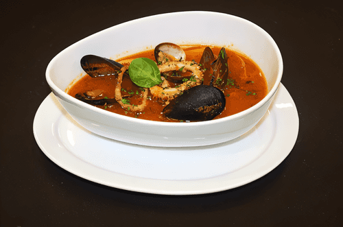 Zuppa di pesce is a traditional Italian fish soup from Italy's coastal regions where fishermen used their fresh catch to create flavorful dishes. This soup features a rich seafood taste thanks to the combination of squid, mussels, shrimp, and octopus. Wine and cherry tomatoes add a slight acidity while garlic and herbs enhance its zestiness. It is made with a fish broth that fills the dish with the deep flavor of the sea. Zuppa di pesce is often served with crispy garlic toasts that perfectly complement its texture. This versatile dish is suitable for both festive gatherings and cozy home dinners, showcasing the depth of Italian gastronomy and love for fresh ingredients.