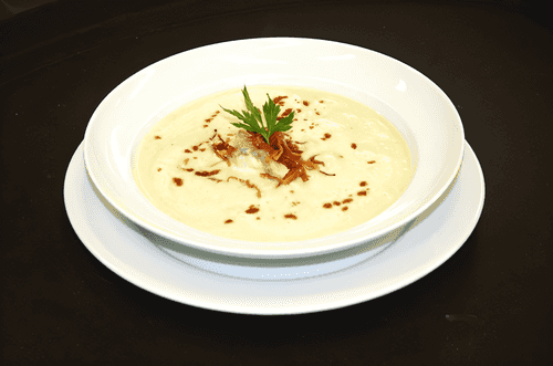 Creamy monkfish soup is an exquisite dish of European cuisine that captivates with its depth of flavor and delicate texture. The history of this soup is tied to fishing traditions, where monkfish, despite its fearsome appearance, was valued for its tasty and firm meat. The tender fish fillet is cooked in aromatic broth and then complemented by golden bacon, leeks, and celery, creating a rich flavor profile. Potatoes add richness to the soup while cream gives it a velvety texture. A drop of martini adds a subtle spiciness as the finishing touch. This soup is perfect for a leisurely dinner on a cool evening, revealing all facets of flavor with each sip.