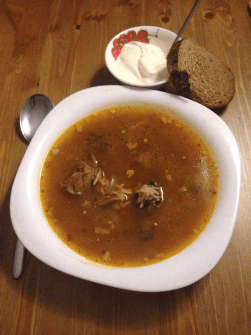 The original soup "Kharcho" is a thick spicy soup with meat - necessarily with veal or beef - rice and tomatoes. The cafe "Sisters Grimm" serves this version - with lamb brisket and tkemali, and the soup turns out especially hearty and aromatic.