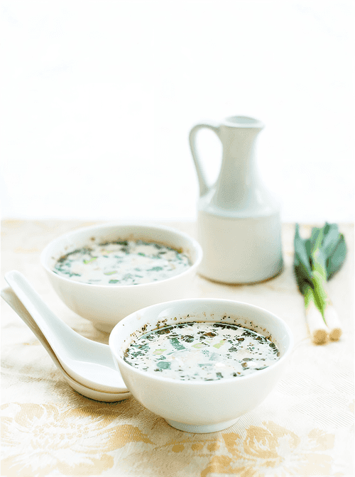 Cucumber summer soup is a refreshing and light dish from Japanese cuisine, perfect for warm days. Its origin is linked to the Japanese tradition of using fresh seasonal vegetables to make simple and nutritious soups. The flavor of this soup is surprisingly harmonious: the tenderness of the meat broth combines with the crunchy freshness of cucumbers and the sweetness of green peas, while soy sauce adds a light spiciness. The added eggs give the soup a silky texture, and herbs complete the composition with freshness and aroma. This soup can be served as a light lunch or dinner, as well as a cold dish if allowed to chill in the refrigerator. Its simplicity in preparation and balance of flavors make it versatile and beloved by many.