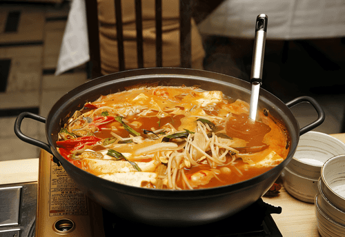 Add spinach and noodles to the soup. Cook until the noodles are al dente.