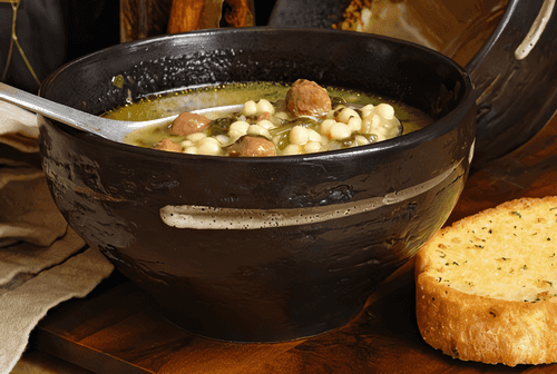 Bring the broth to a boil and add the meatballs. After 15 minutes, add the spinach.