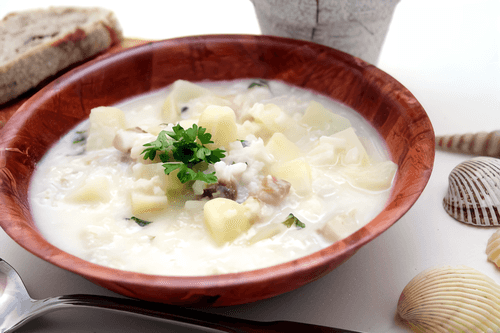 Creamy fish soup with mushrooms and kohlrabi
