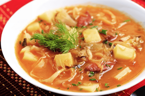 Sauerkraut soup with rice and potatoes, Zaporizhzhya style