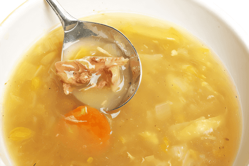Cut the potatoes into cubes and add them to the soup. Cook for 30 minutes.