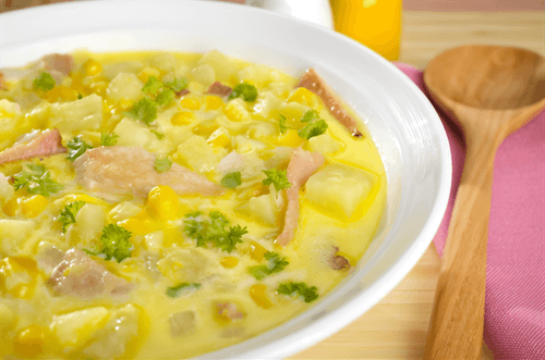 Creamy Soup with Sweet Corn, Bacon and Parsley