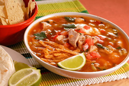 Turkey soup with vegetables and corn chips