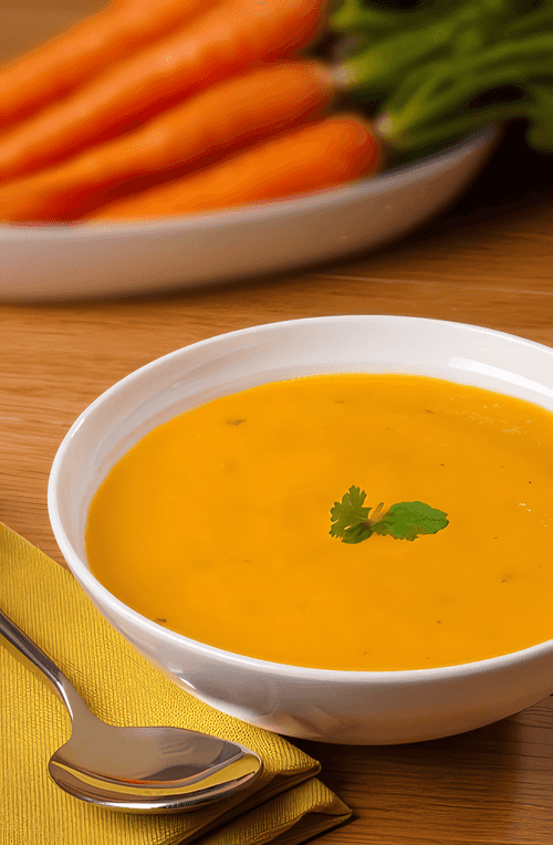 Carrot soup puree with coriander and vermouth is a refined dish of Italian cuisine that combines the tenderness of root vegetables with the subtle spice of seasonings. Its origin can be traced to Mediterranean culinary traditions where vegetables play a key role. The velvety texture of the soup is achieved by finely grinding the ingredients, while vermouth adds a light wine note highlighted by the freshness of orange juice. Coriander used as a spice and garnish gives a piquant depth of flavor. This dish is perfect for cozy warming evenings, festive lunches, or simply enjoying the harmony of aromas. Serving it with a drop of cream makes it even more delicate, and fresh cilantro leaves add a vibrant finishing touch. The taste of this soup is a balance of sweet carrots, the bitterness of vermouth, and citrus freshness creating a culinary symphony.