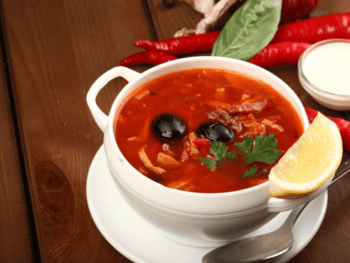 Georgian solyanka is a bright and rich dish that embodies the spirit of Georgian cuisine. Its history is linked to the tradition of slow-cooking meat with aromatic spices, creating a rich flavor and tender texture. The dish is based on beef fillet stewed in red wine with tomato paste, onions, and spicy seasonings. Red ground and pod pepper add characteristic heat, while cumin seeds and fresh herbs provide spicy and refreshing notes. Garlic adds expressiveness, making the taste deep and rich. Solyanka is served with Georgian lavash, which perfectly absorbs the aromatic sauce. This dish warms you up, delights with its texture, and is ideal for heartfelt gatherings, conveying the traditions of hospitality and richness of Caucasian cuisine.