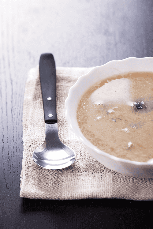 Mushroom soup with barley and parmesan is a fragrant dish of European cuisine that embodies the refinement of flavors. The white mushrooms, revered for their rich forest note, pair beautifully with the softness of barley, creating a harmonious texture. Thyme and garlic add depth to the aroma while fresh parsley and lemon juice refresh the taste. The finishing touch is parmesan, adding a light creamy tang. This soup warms and nourishes, making it perfect for autumn and winter evenings. It can be served as a standalone dish or alongside crispy bread that highlights its richness. Traditionally, such soup is valued for its nutrition and ability to reveal the natural shades of mushrooms, making it an exquisite choice for gastronomy enthusiasts.