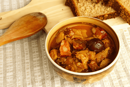 Mushroom soup with sauerkraut and ham is a refined dish of European cuisine that harmoniously combines rich aromas and flavors. Its origins trace back to the traditions of Alpine and German gastronomy, where sauerkraut plays a key role. This soup has a light tanginess complemented by the delicate saltiness of the ham and the earthy aroma of mushrooms. Barley adds nourishment and textural depth to the dish. It is perfect for cold days when you want something hearty and aromatic to warm you up. Served hot, often with rustic bread that beautifully enhances its complex flavor. This soup is an excellent choice for lovers of rich, layered flavor compositions and authentic European recipes.
