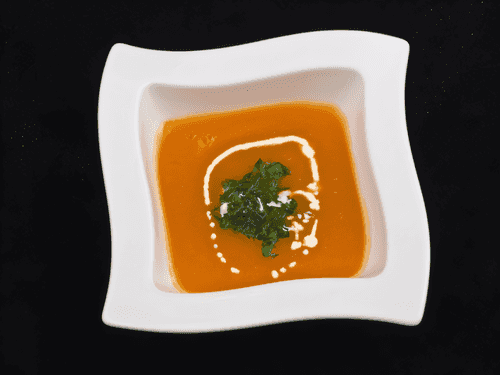 Quick carrot cream soup with dill pesto is a harmonious blend of the gentle taste of carrots and the aromatic dill. This recipe originates from European cuisine, where vegetable cream soups are valued for their lightness and richness at the same time. Carrots add natural sweetness to the dish, while dill pesto adds fresh herbal notes, turning it into a refined gastronomic delight. The velvety texture of the soup provides a sense of comfort, and its bright color pleases the eye. Due to its quick preparation, this soup is perfect for both a weekday lunch and an exquisite dinner. Serve it hot, complemented by fresh bread or croutons to emphasize its richness and depth of flavor.